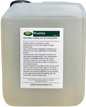 1 liter Plantex per 20.000 liter vijverinhoud.